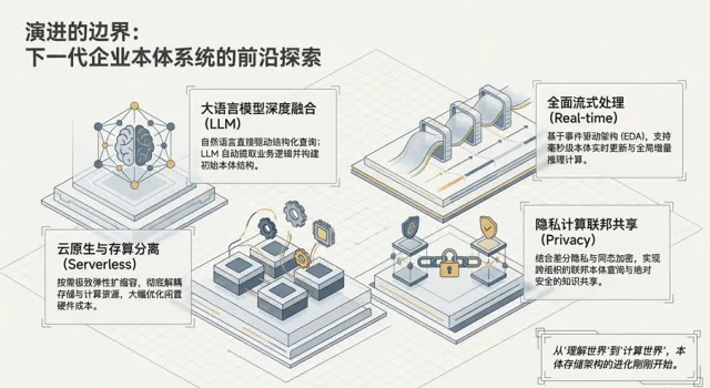 CDO/CIO在决策时应具备十年以上的视角。选择一个能够承载企业“数字孪生”愿景的本体存储引擎,不仅是技术选型,更是对企业长期数字资产化能力的战略博弈。在多模态融合、神经符号协同、时序感知、联邦隐私保护与Serverless演进的多重驱动下,本体存储架构的进化才刚刚开始。从理解世界到计算世界,企业级本体系统正从静态知识图谱迈向可操作、可推理、可演化的“企业认知操作系统”,参看图2.0
