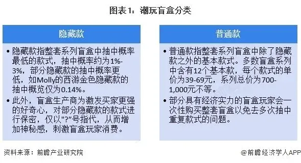 潮玩盲盒按照产品特性主要分为普通款潮玩盲盒和隐藏款潮玩盲盒。