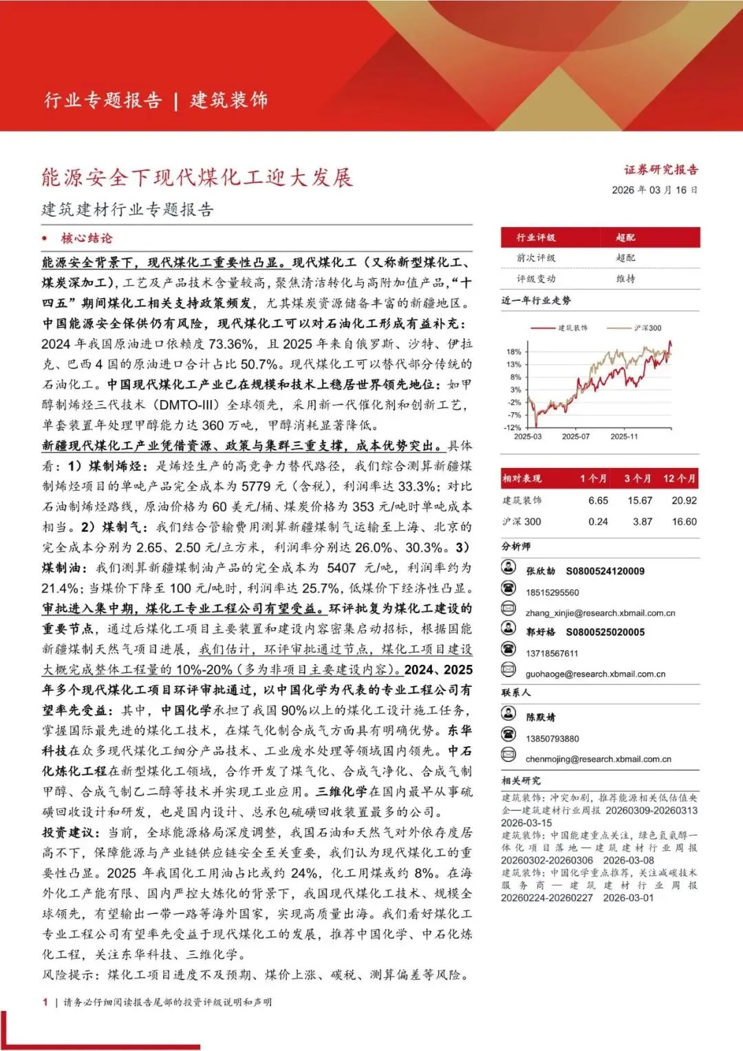 回复暗号:建筑建材行业专题报告:能源安全下现代煤化工迎大发展-260316-西部证券-24页