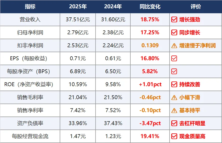 从年报推算,2025年非经常性损益约2600万元,主要来源可能是政府补助和投资收益。虽然绝对金额不大,但趋势值得注意:如果扣非增速持续低于净利润增速,说明公司主营业务的内生增长动力在减弱。