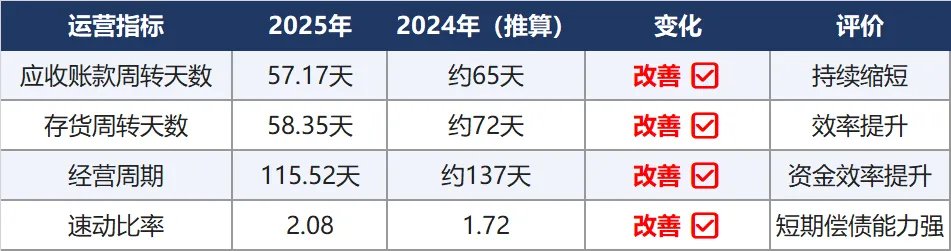 这是精细化管理能力的体现。周转加快意味着资金效率提升,存货积压风险降低。