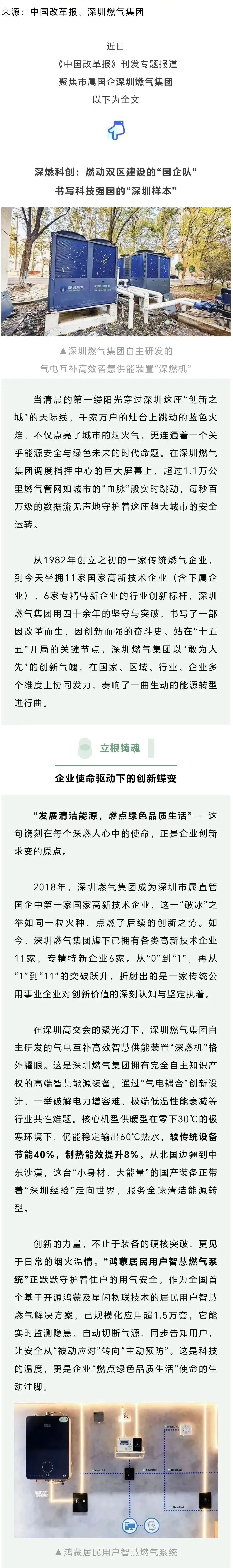 企业报道丨书写科技强国的“深圳样本”!深圳燃气集团获《中国改革报》专题→