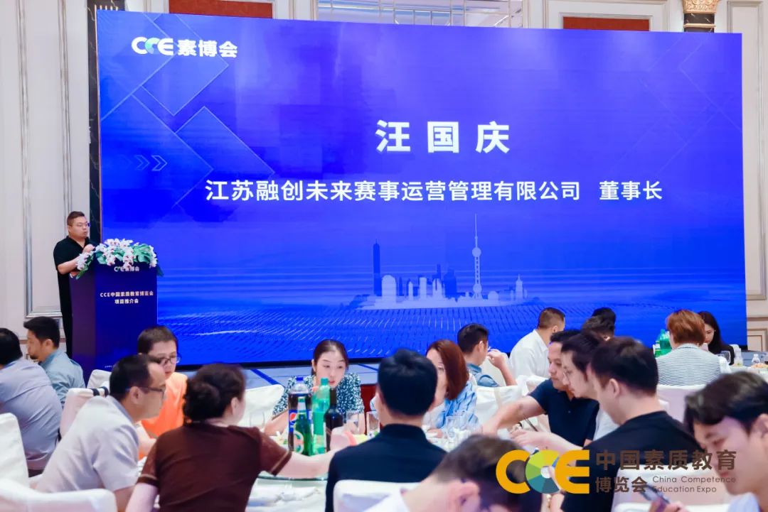 江苏融创未来赛事运营管理有限公司董事长汪国庆上台致辞,他表示今年10月将再次与CCE素博会携手,举办【全国青少年人工智能教育行业发展大会暨全国工商联教育商会青少年人工智能教育专委会揭牌仪式】,做《青少年人工智能教育行业发展报告》等一系列话题讨论,届时将邀请校外科技教培机构投资人校长、中小学学校科技副校长、信息化中心院校老师、高校专家等,预计活动规模500多人,吸引到场观众在2000人以上。