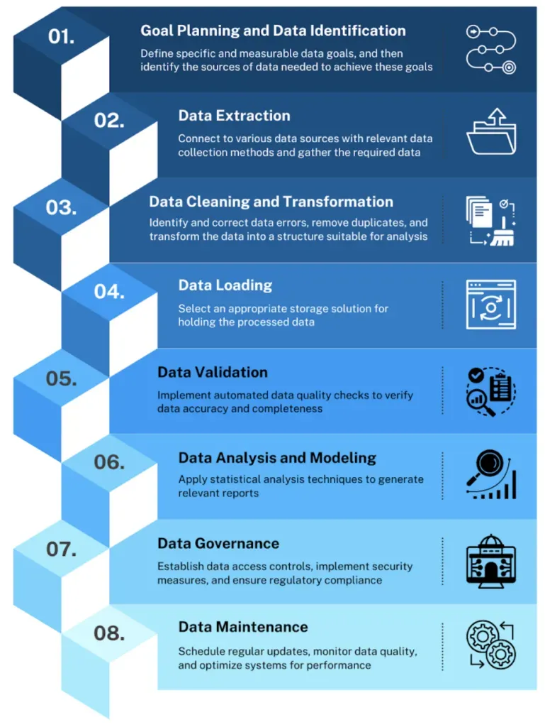数据行业的工作流程通常是闭环的:采集 → 处理 → 分析 → 治理 → 维护,这也是企业数据团队日常运作的核心逻辑。