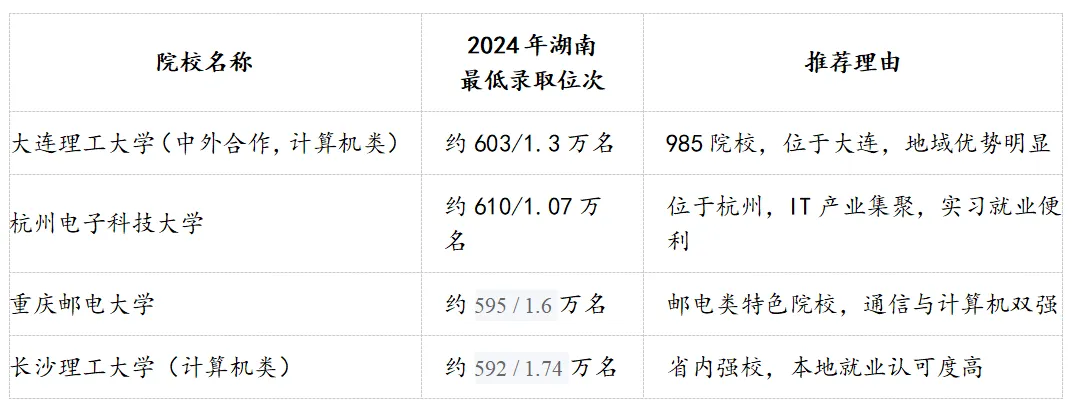 院校推荐(598分·湖南物理组·参考2024年数据)