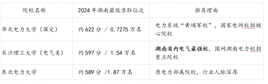 若家庭追求稳健与确定性:优先电气类(长理+国网湖南是“黄金组合”)。