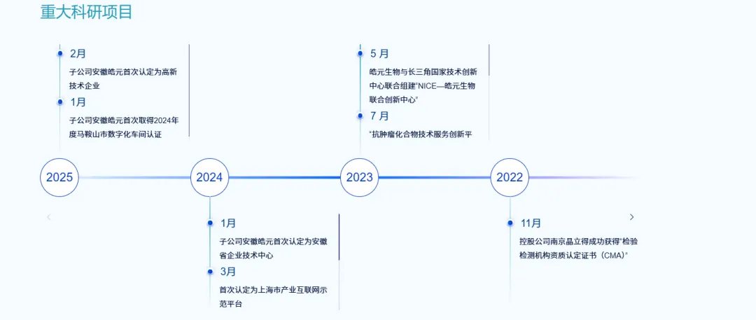 皓元医药成立于2006年,是一家专注于为全球制药和生物医药行业提供小分子及新分子类型药物CRO&CDMO服务的平台型高新技术企业。公司构建了覆盖"起始物料-中间体-原料药-制剂"的一体化服务平台,形成了"前端生命科学试剂+后端原料药、中间体和制剂业务"的双业务发展模式。