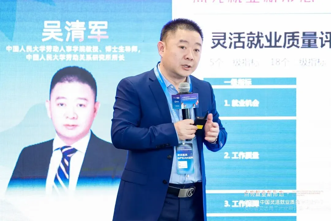从左到右依次:高灯科技副总裁赵莹,深圳市人力资源和社会保障局就业促进和失业保险处副处长黄志文,高灯科技联合创始人、总裁张民遐,腾讯集团副总裁、腾讯研究院院长司晓,中国人民大学劳动人事学院教授、博士生导师,中国人民大学劳动关系研究所所长吴清军,深圳人才集团总经理翟斌灵活就业并非是一个新颖的研究主体,自我国劳动力市场建立以来,灵活就业现象与零工市场便一直存在。然而,当前的灵活就业市场与传统零工市场有着根本性的差异。随着数字技术的发展,灵活就业机会大量涌现,并与新的商业模式和用工形式紧密相连。