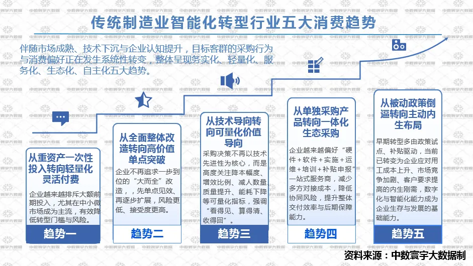 伴随市场成熟、技术下沉与企业认知提升,目标客群的采购行为与消费偏好正在发生系统性转变,整体呈现务实化、轻量化、服务化、生态化、自主化五大趋势,从过去“买设备、买系统”转向“买效果、买服务、买保障、买收益”,消费决策更理性、更聚焦价值。