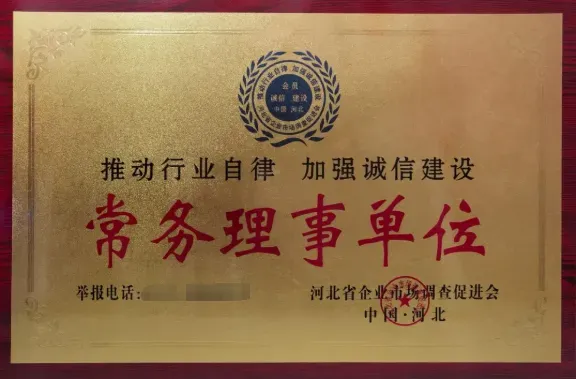 近日,百德福再获河北省企业市场调查促进会颁发的“常务理事单位”牌匾。