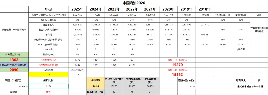 我用2025年的新数据,对中国海油重新估值: