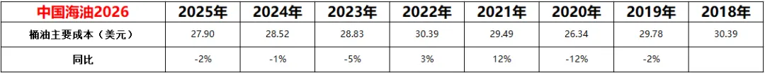 桶油主要成本从2018年的30.39美元,下降到2025年的27.9美元,总体下降了8.19%。这个数据的下降,一方面体现了公司盈利增加的来源,另一方面体现了公司管理层的优秀,再一方面体现了公司对技术升级的执着。