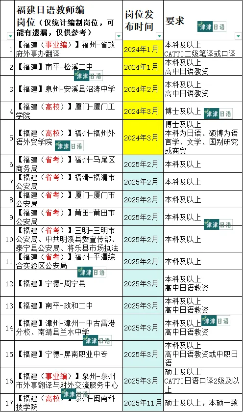 福建的高中日语教师编岗位真的很少。