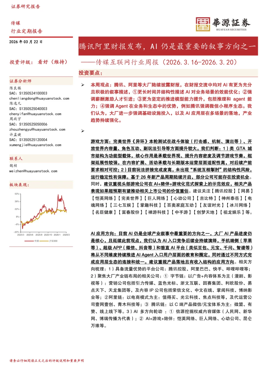 洞察 | 传媒互联网行业周报:腾讯阿里财报发布,AI仍是最重要的叙事方向之一