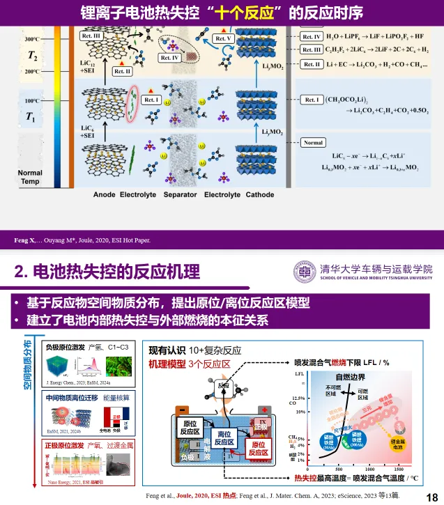 热失控本质是电化学-热化学-传热耦合反应,团队首次解析其“十个反应”时序链,发现负极析气攻击正极是关键引爆点。