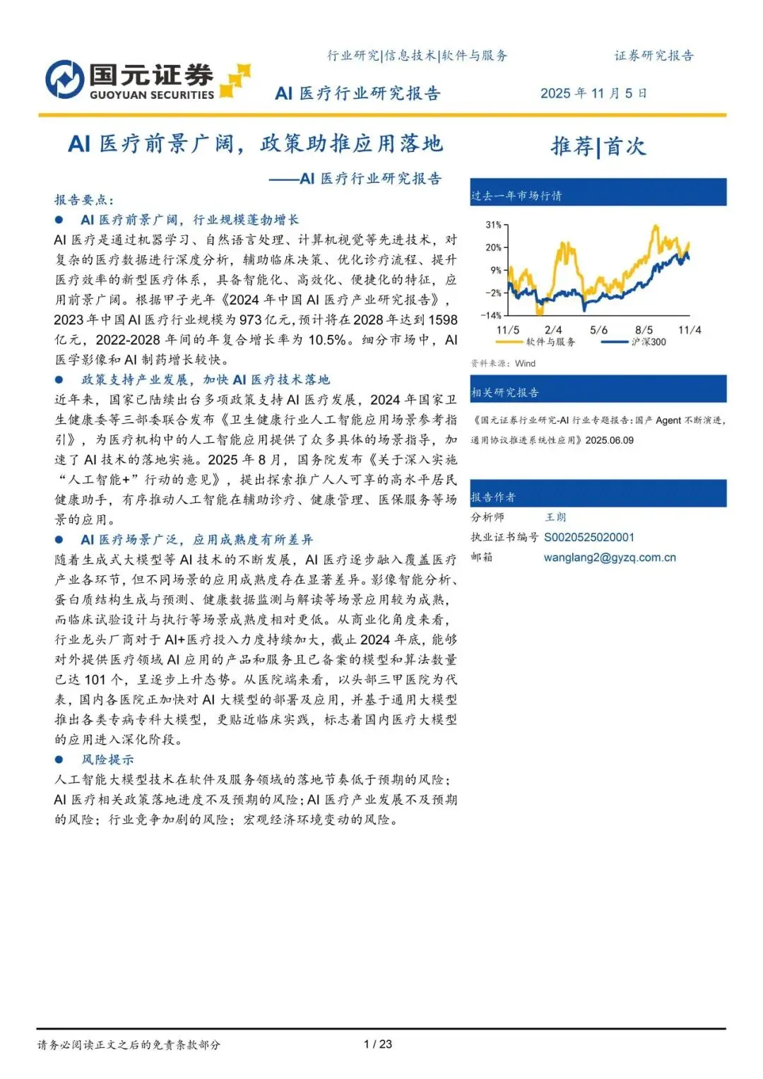 当人工智能遇见生命科学,一场关乎每个人健康的深刻变革正在悄然发生。从辅助诊断到新药研发,从健康管理到医保支付,AI正以前所未有的速度重塑医疗行业。国元证券最新研究报告指出,中国AI医疗市场规模预计将在2028年达到1598亿元,一个千亿级的蓝海市场正在加速形成。