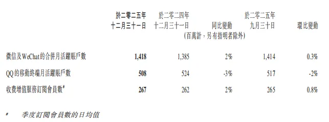 2025年腾讯核心财务指标表现亮眼,实现营收与利润双位数增长,且利润增速优于收入增速,体现出极强的运营效率与成本控制能力。