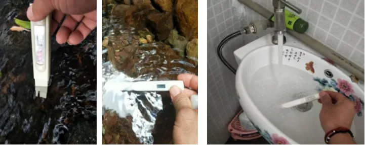下图为他们在全家村检测水质的照片,水质检测结果,令人大吃一惊!半山腰的山泉水TDS值为4mg/L,居民家中的“自来水”,即把山泉水引入家中制得的土“自来水”,村民全家饮的、用的就是这个水,TDS值为5mg/L,连水稻田里的水(山上流淌下来的山泉水注入),TDS值也仅为12mg/L,哇!全是与反渗透出口饮用纯净水同一级别甚至更低TDS值的天然纯净水!
