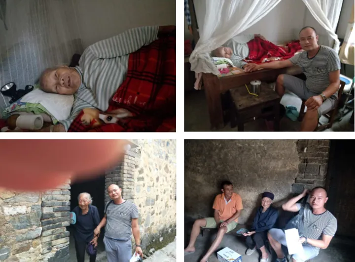 这位老太太当年98岁,2018年9月2日秦成义去调研当天,正好老太太感冒,身体不适,躺在床上,但过二天病就好了,见下图上。另一位名字叫刘付嫂的老太太年龄更大,当年已102岁,下图下为秦成义与刘付嫂老太太在一起。