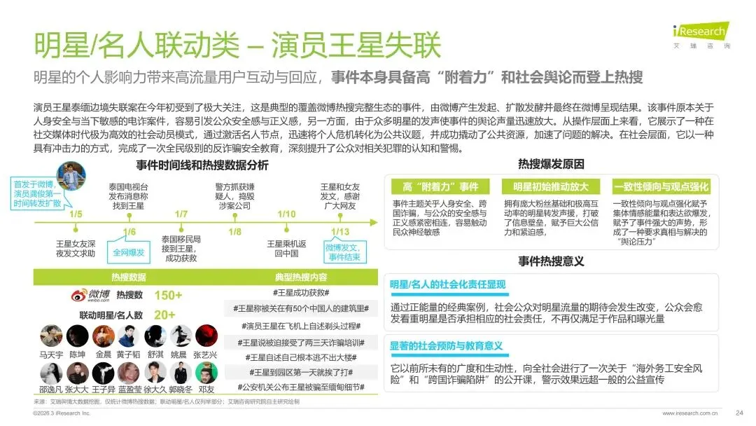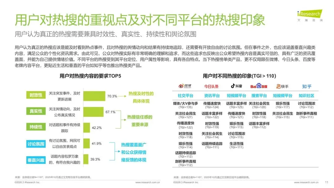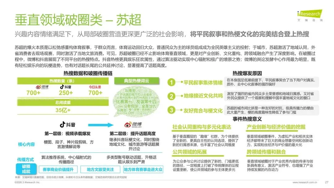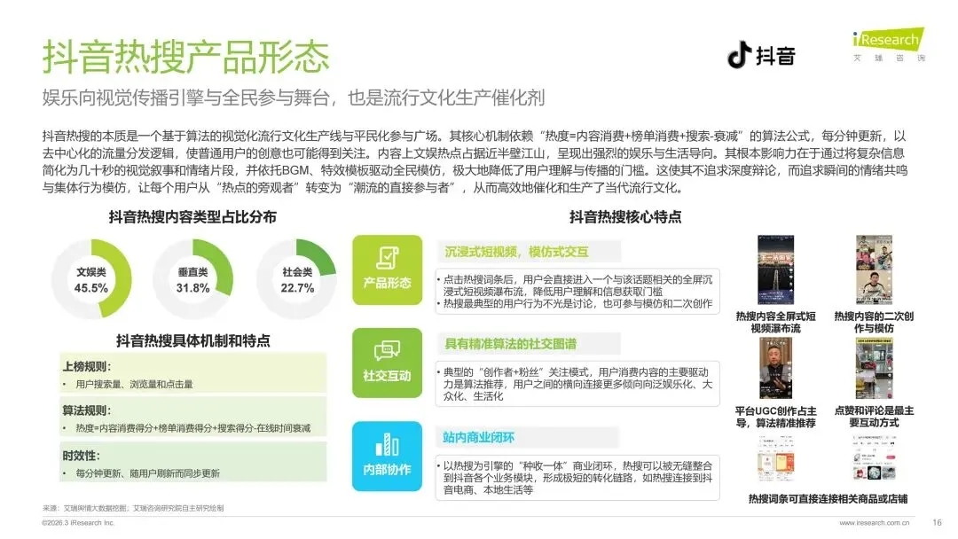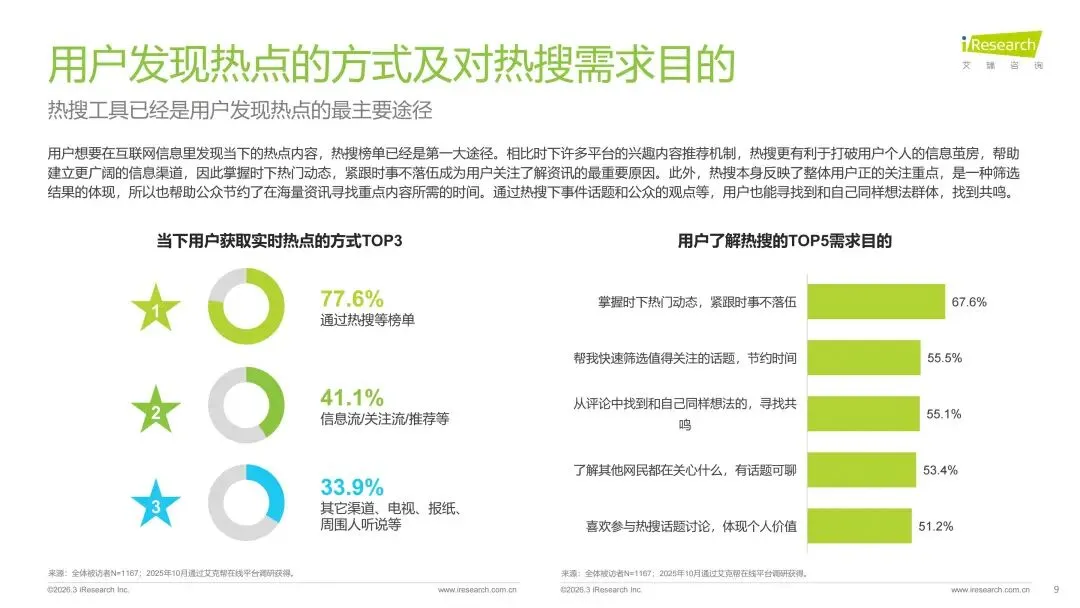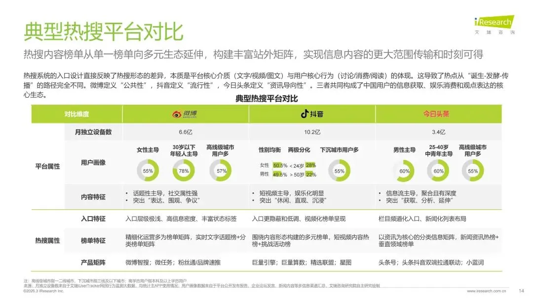 本报告旨在系统剖析数字时代热搜榜单的演进脉络、社会作用与未来趋势走向。报告梳理了网络媒体热搜榜单从萌芽诞生到进阶的发展历程,揭示了其如何逐步成为公众感知热点、参与讨论的核心信息枢纽。在此基础上,报告深入分析了用户对即时、聚合热点内容的深层需求,并以此为基准,评估了当前主流平台热搜产品的形态、设计逻辑和热搜数据表现。通过对时政、社会、公众人物事件、垂直破圈事件、文娱等多元领域的典型案例进行解构,报告详细阐释了热搜事件的典型构成条件、传播路径及其所产生的广泛社会影响力。