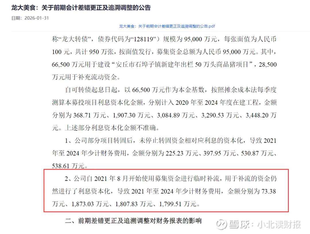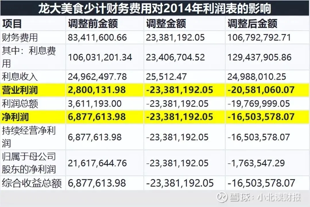 少计的利息看似金额不大,真实意图是隐瞒公司实际亏损的事实,下图是公司追溯调整以后的财务数据。