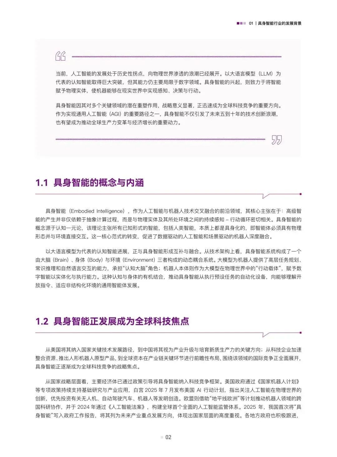 报告首先阐述了具身智能的概念内涵,指出其正成为全球科技竞争的焦点。具身智能旨在让机器像人一样通过感知和行动来理解和改造物理世界,这对其背后的数据体系提出了极高要求。当前,行业面临的核心挑战在于如何高效、低成本地获取能够支撑智能体在复杂、开放环境中进行精细操作与决策的训练数据。