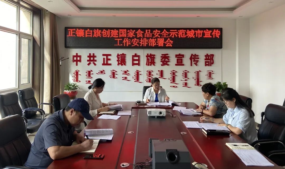会上由旗委宣传部正科级副部长、外宣办主任孙晨亮传达学习了《关于印发<锡林郭勒盟创建国家食品安全示范城市宣传工作方案>的通知》(讨论稿),提交了《正镶白旗创建国家食品安全示范城市宣传工作方案》,与会人员开展了讨论交流并提出相关意见建议。