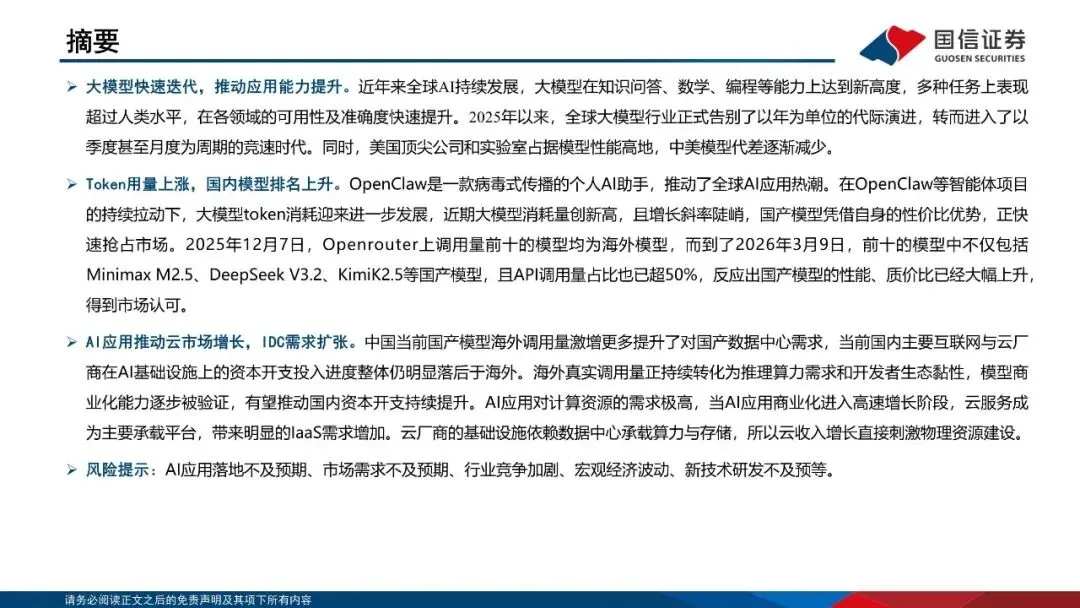 回复暗号:计算机行业Token出海专题报告:国产模型抢占市场,IDC需求迅速扩张-260314-国信证券-33页