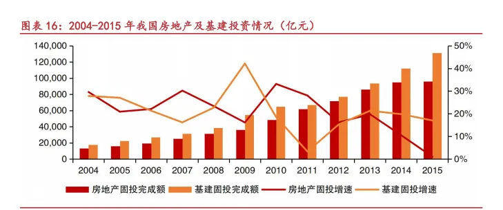 首轮上行周期(04-11 年):新世纪后随着我国经济快速增长,2004-2011 年间我国基础设施建设和房地产投资景气度高涨,叠加 2008 年“四万亿”基建投资等政策,7 年间房地产固投完成额由 1.32 万亿元迅速增长至 6.18 万亿元,CAGR 约 25%,而基建固投完成额由1.75 万亿元增长至 6.69 万亿元,CAGR 达 21%。下游持续超 20%的增速拉动了工程机械行业需求,我国挖机销售数量从 2004 年 2.57 万台迅速增长至 2011 年的 17.84 万台,8 年间销量增长约 6 倍。