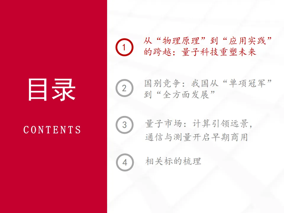 这份2026量子科技产业发展分析报告,系统梳理了量子科技从物理原理到产业应用的全维度发展图景,剖析了全球竞争格局与市场前景,并梳理了相关产业标的,展现出该领域从技术突破向商业化落地迈进的核心趋势。