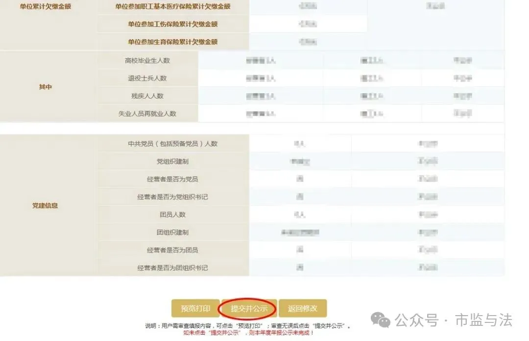 提交并公示后,如发现有部分内容填写错误的,在6月30日前可以登录年报系统页面进行修改。若发生修改,务必在修改后再次点击“提交并公示”,否则系统将显示为未完成年报状态!