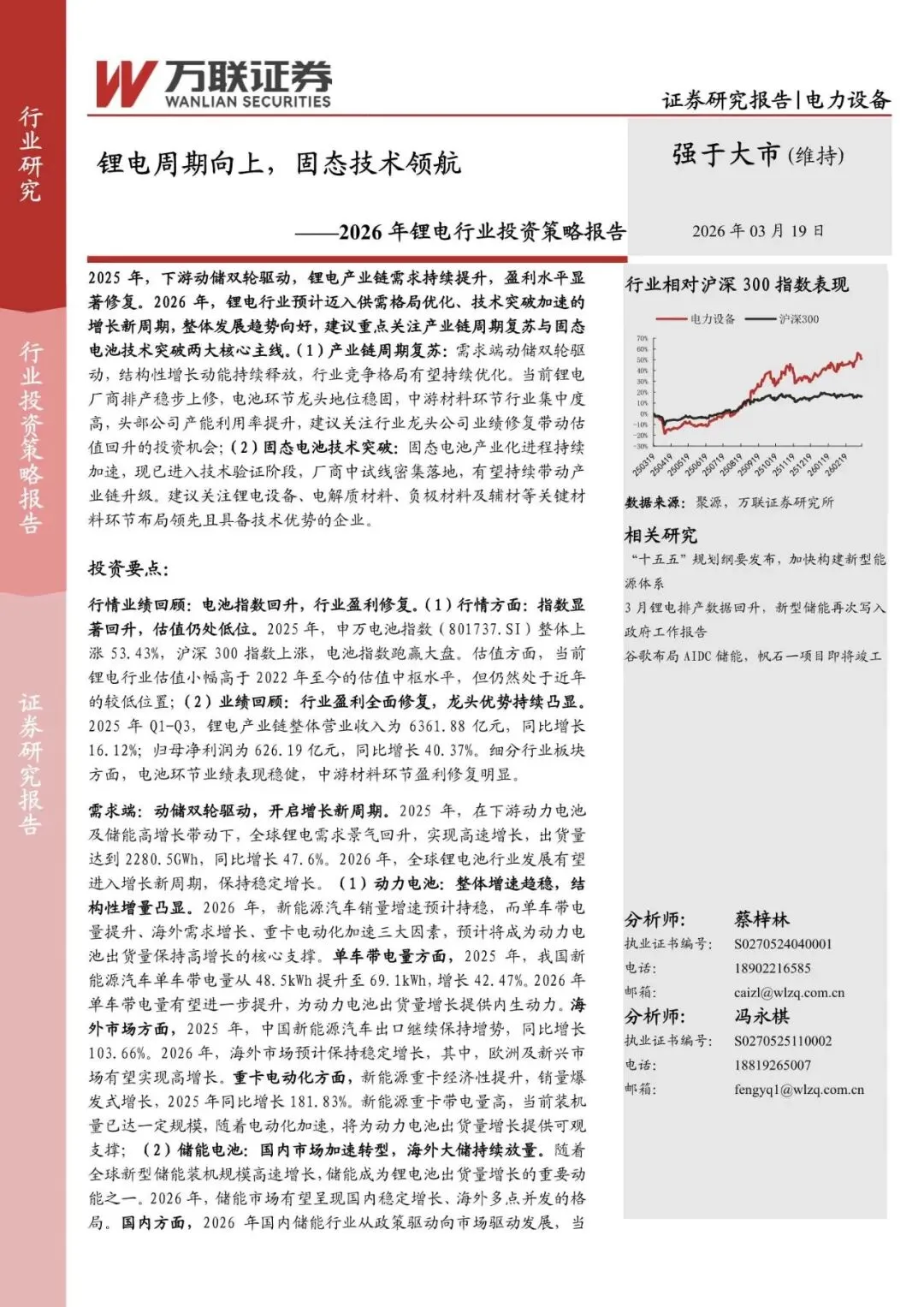 回复暗号:2026年锂电行业投资策略报告:锂电周期向上,固态技术领航-260319-万联证券-46页