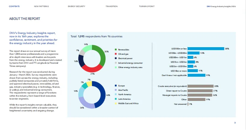 DNV这份报告,调研时间是2026年1—3月,刚好撞上中东冲突升级、全球能源供应链震荡的关键窗口。