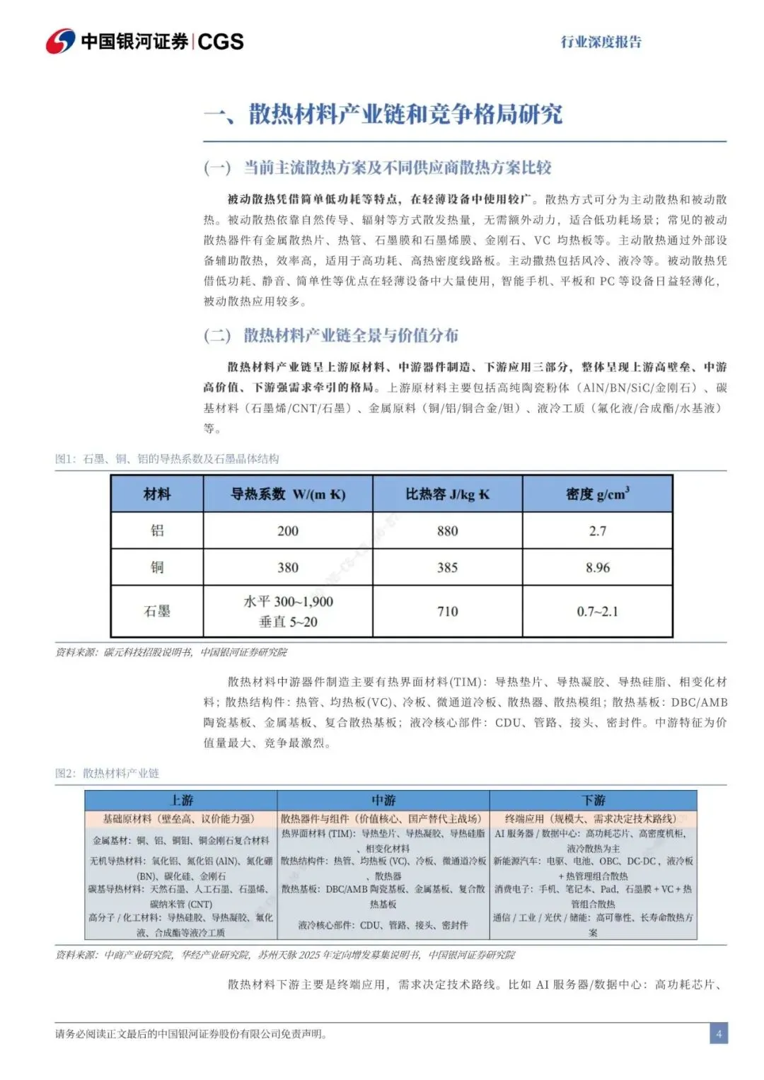 上游原材料主要包括高纯陶瓷粉体(AIN/BN/SiC/金刚石)、碳基材料(石墨烯/CNT/石墨)、金属原料(铜/铝/钢合金/银)、液冷工质(氟化液/合成酯/水基液)等。散热材料中游器件制造主要有热界面材料(TIM)、散热结构件、液冷核心部件等。