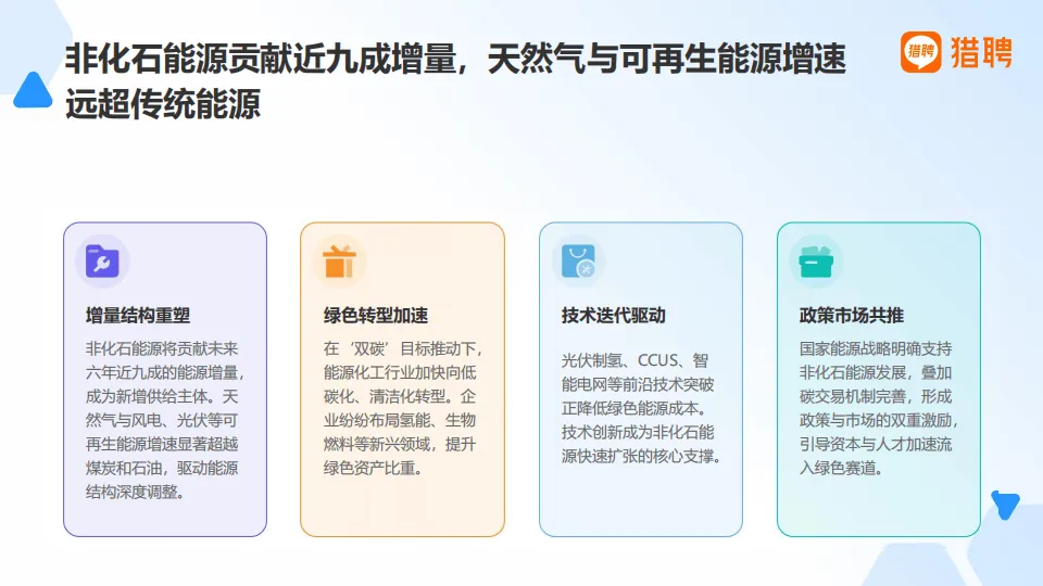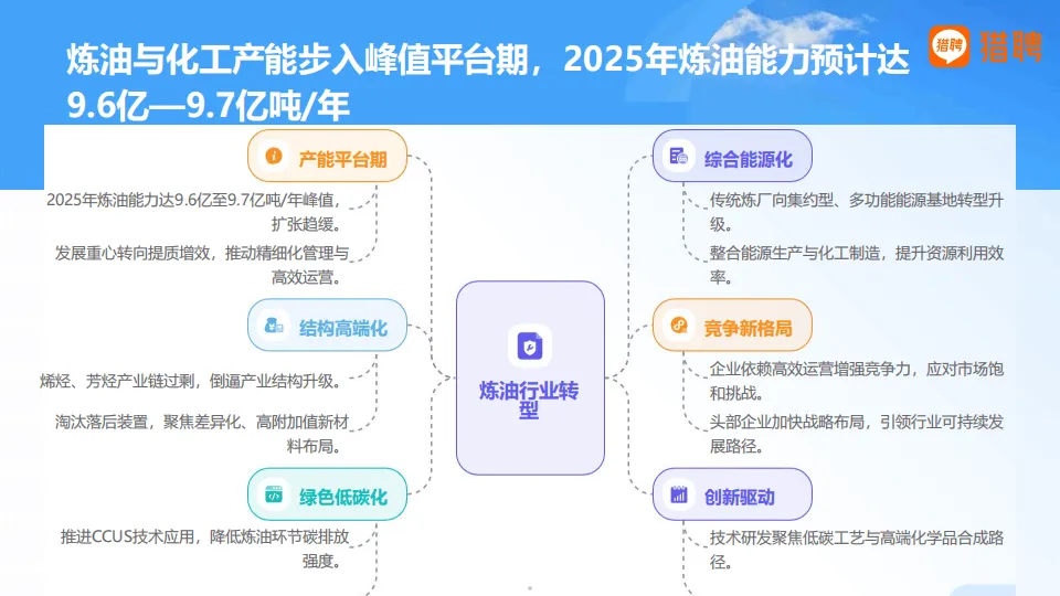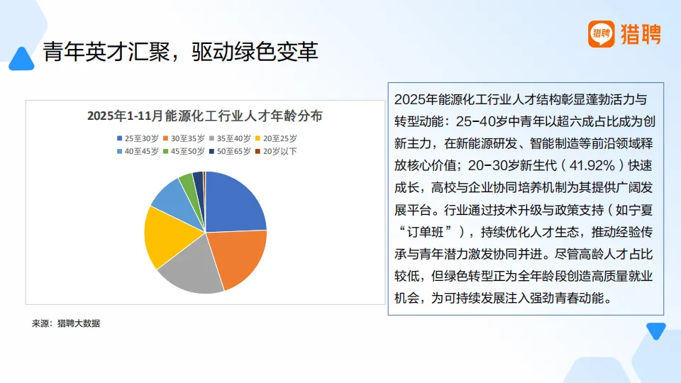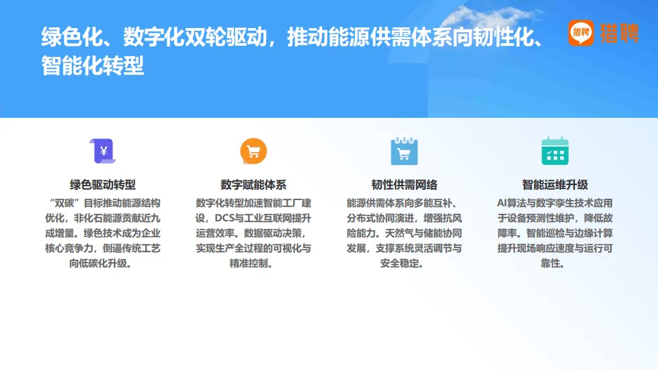 2025年中国能源化工行业正经历深度结构性变革,猎聘基于平台大数据的分析显示,行业以绿色化、数字化为双轮驱动,从规模扩张转向提质增效,新能源成为发展核心,人才生态与岗位需求也随之迎来全方位重构。