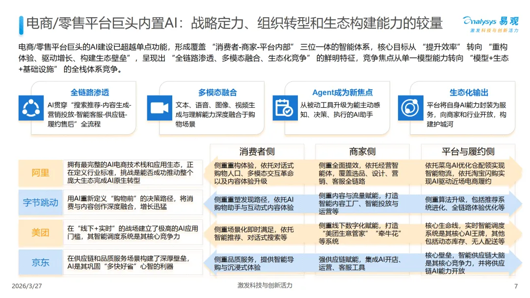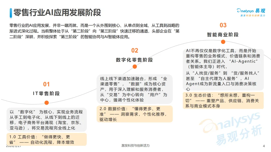 易观分析 2026 年 3 月发布的报告显示,中国零售 AI 应用正从