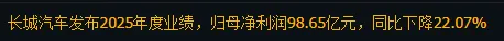 前天长城汽车发布了2025年的财报,净利润98.65亿元,同比下滑了22%。
