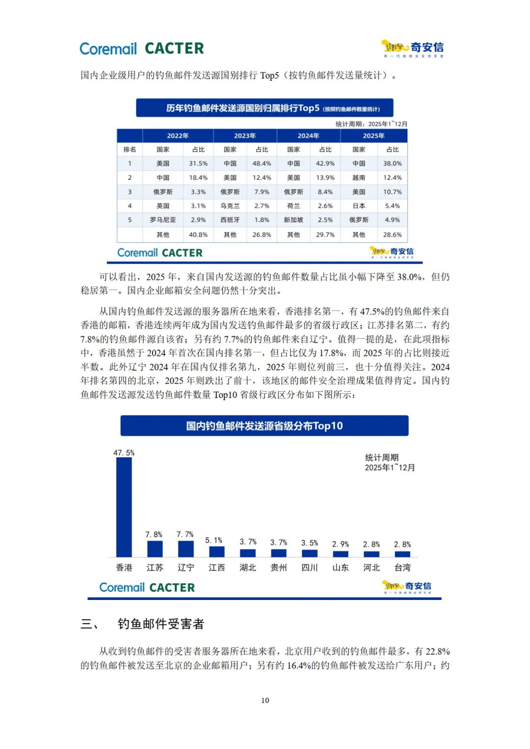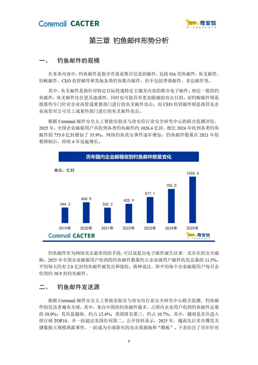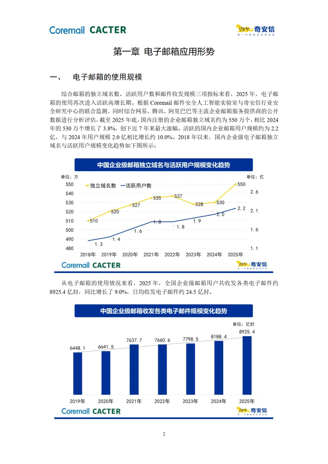 报告由 Coremail 与奇安信联合发布,基于 2025 年企业邮箱安全监测数据,展现了企业邮箱使用量增长下的多重安全风险,揭示了恶意邮件攻击的新特征、新策源地及典型黑产团伙行为,同时给出了风险趋势与防护方向。