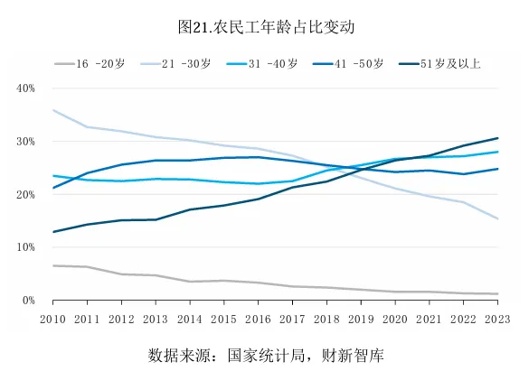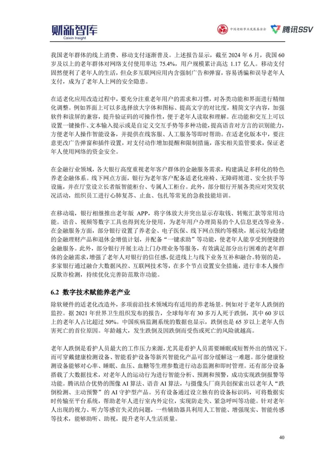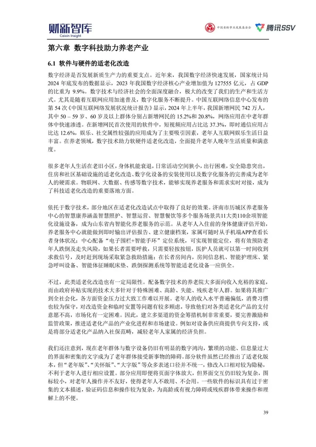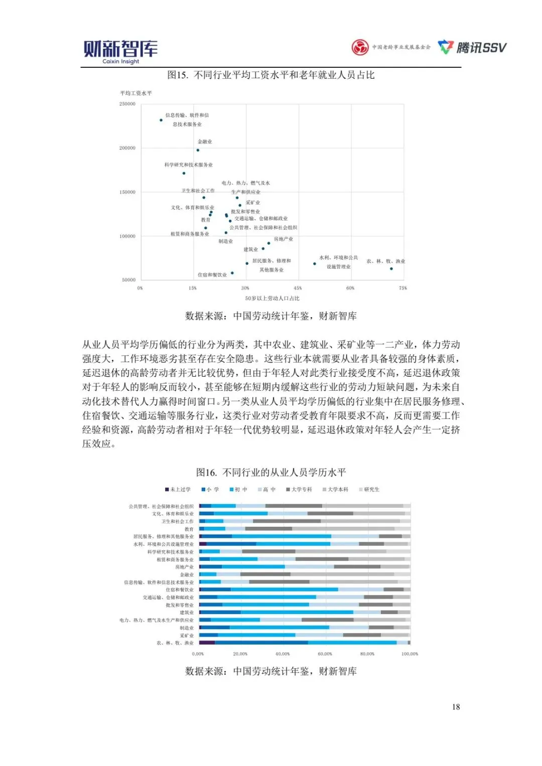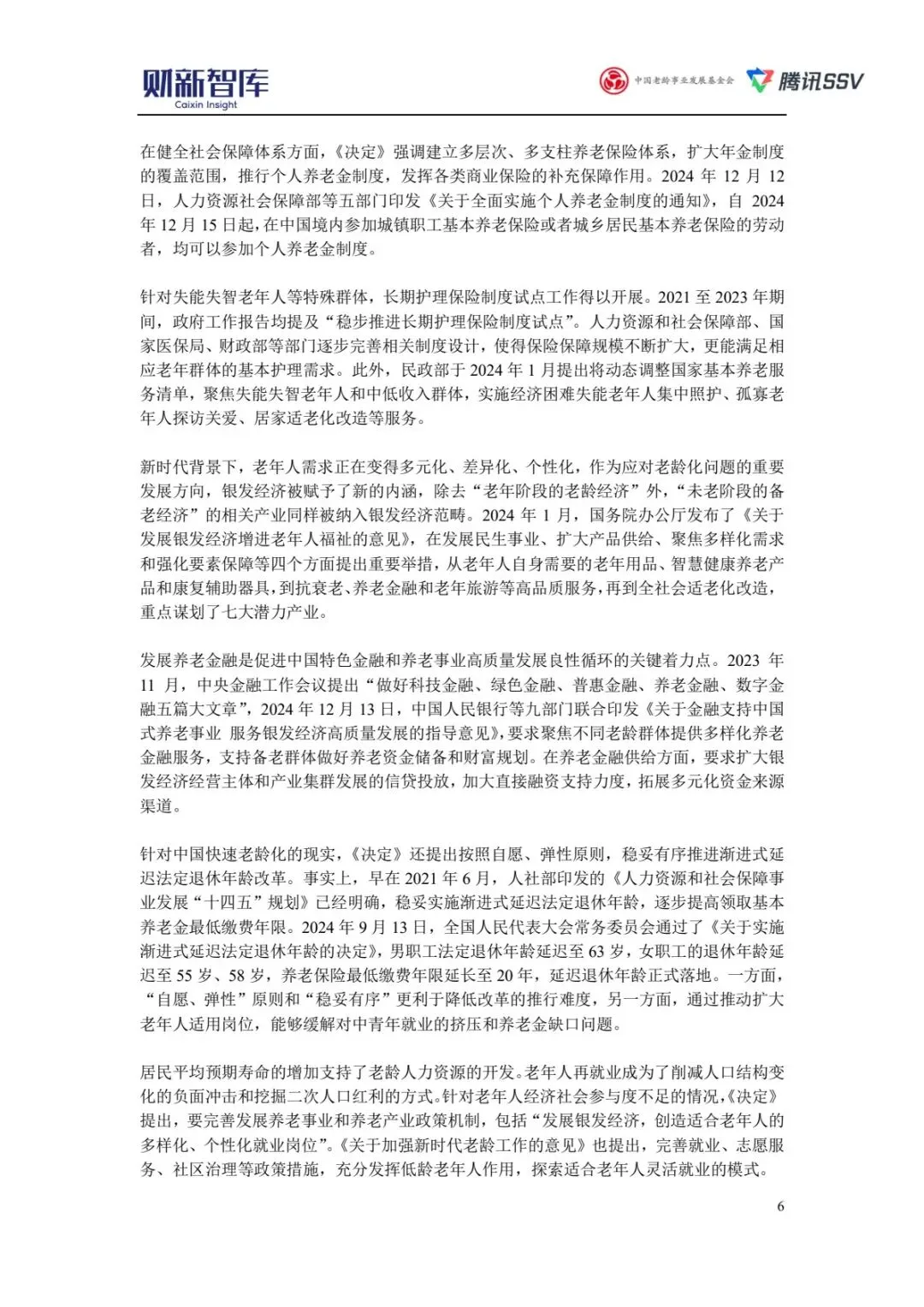 2021年农村老年人年均收入14105元,约为城镇老年人的三成,28.1%的老年人愿意从事有收入的工作。60-64岁老年人就业率34.4%,65-69岁27.5%。 农民工中50岁以上占比已超30%,16-20岁仅1.2%(2010年为6.5%)。76.86%的招聘岗位设有年龄限制。 银发经济规模约7万亿元,预计2035年达30万亿元。2023年老年用品市场5万亿,60岁以上网民1.71亿,网购用户占69.8%。 2023年银发旅游者11.6亿人次,占国内旅游20.6%,2028年市场规模预计2.7万亿。 全国失能老年人约3500万,占老年人11.6%,患病率是总人口4倍,带病生存8年+。城镇长护需求1.4万亿,保障端不到5000亿,缺口超9000亿。失能到身故平均88个月。 养老护理人员潜在需求1000万+,实际仅30多万。43.8%日工作超10小时,年流失率30%+。失能月均护理费4500元+,比自理高出近2000元。 长期护理险试点49城,覆盖1.8亿人,但保障对象多限于城镇职工,重度失能月度标准约2000元,仅覆盖约三成护理费用。 60岁以上老年人网络支付使用率75.4%,用户规模1.17亿。日本GPIF养老金基金管理资产260万亿日元,2001年至今年化收益4.4%,值得借鉴。 养老机器人分三类:护理机器人(辅助生活起居)、康复机器人(相对成熟)、陪伴机器人(情感慰藉)。目前护理机器人仅能作为辅助用具,陪伴机器人信任感和体验感仍待提高。