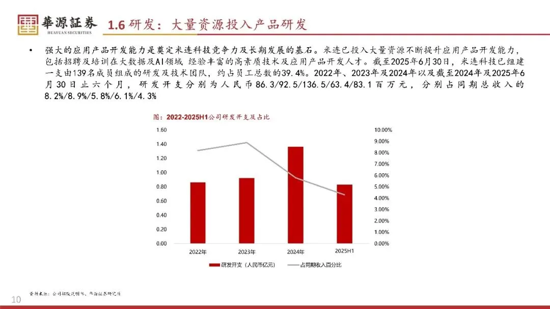 创新驱动型关系链算法技术支撑,大力投资技术研发:四层算法框架,利用用户画像、行为模式及用户关系密度等数据,有效预估用户被其他用户打招呼的概率及该招呼转化为有效对话的概率,预估用户加入会话或参与音视频聊天的可能性。截至2025年6月30日止六个月,该算法已撮合逾3.5亿次有效会话及超过2.3亿次有效音视频互动。2022年、2023年及2024年以及截至2024年及2025年6月30日止六个月,研发展开支分别为人民币86.3/92.5/136.5/63.4/83.1百万元,分别占同期总收入的8.2%/8.9%/5.8%/6.1%/4.3%,发力社交+AI深度融合。