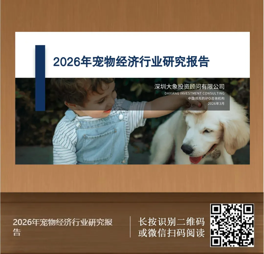 来源:大象IPO,洞察宠物经济消费升级与科技融合趋势,激活情感消费与产业协同价值,大象投顾锚定新消费核心赛道,以全链条洞见赋能业态升级,以前瞻视野解锁全产业链增长新局——宠物经济,撬动万亿市场新蓝海,我们愿与优秀企业并肩同行,提供全方位的全球化咨询及资本服务。