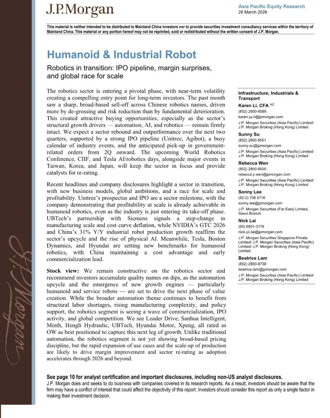 报告名称:人形与工业机器人:转型中的机器人行业(文末附全文pdf) 出 品 方:摩根大通