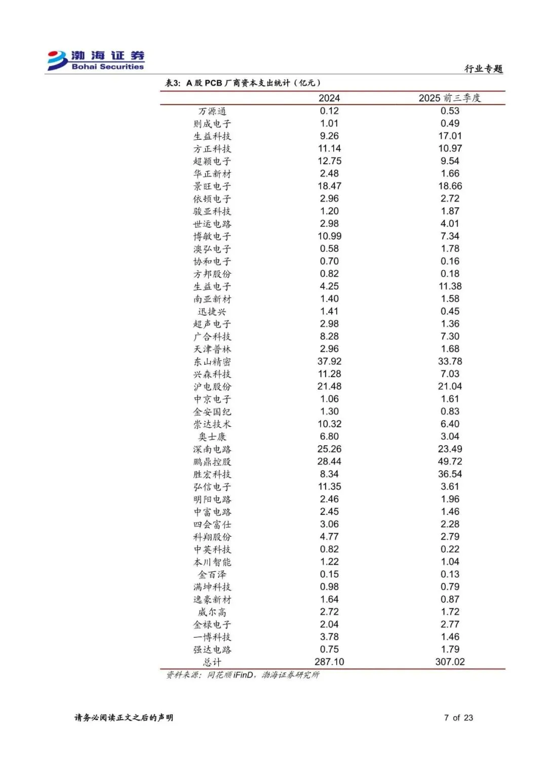 2025年全球PCB行业市场规模预计为848.91亿美元,同比增长15.4%。目前PCB厂商资本支出上行趋势明显,A股SW印制电路板行业中44家上市公司2025-前三季度资本支出合计307.02亿元,已超过2024年全年水平(287.10亿元),