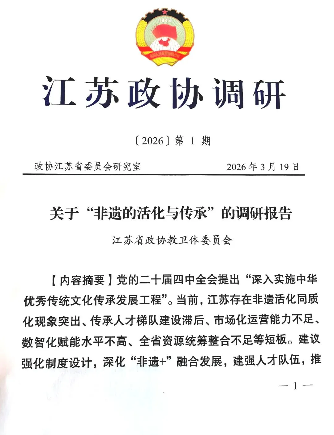 非遗是中华优秀传统文化的重要载体,是江苏文化强省建设的宝贵资源。为推动全省非遗活化与传承高质量发展,结合本次考察情况,针对全省层面提出以下意见建议。