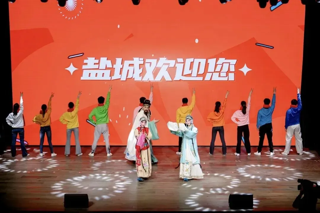 (三)深化利用,激活融合效益。以融合理念推进非遗发展,打造更多实践和应用场景。一是融入旅游发展。西溪《天仙缘》挖掘国家级非遗董永和七仙女文化元素,把非遗故事与舞台剧、音乐、舞蹈融为一炉,受到市场热捧,年收入超 3 亿元。淮剧小镇将国家文华大奖淮剧《小镇》落地建湖九龙口,穿插淮剧、杂技等散点演出、实景演艺,让非遗活化感知。两景区一起入选“全国非遗与旅游融合发展优选项目”、省无限定空间非遗进景区示范项目。先后推出“非遗寻踪” 等多个主题线路,串联东台鱼汤面、盐城八大碗等美食工坊,年接待游客超 50 万人次。二是融入艺术创作。发挥盐城剧目创作优势,加大淮剧、杂技等国家级非遗精品创作、创牌、创收力度。继淮剧《小镇》获得全国文华大奖后,杂技《炼——倒立技巧》斩获“金菊奖”“金狮奖”、国际青少年马戏节金奖,实现三金大满贯。去年全市新创大小戏剧本各28部,推出新戏5台,8部作品获国家级荣誉,11部作品获省级荣誉。淮剧《小镇》累计演出240场、收入超千万,入选全国演出市场双效统一优秀演出项目,淮剧保护传承发展路径经省厅推荐被文旅部向全国通报推广,文旅部卢映川副部长、省委宣传部徐缨部长先后作出批示。三是融入宣传推介。用好淮杂非遗等传播载体,让更多人感受盐城文化魅力。2023年中央电视台《非遗里的中国》专程走访淮剧小镇,撒贝宁等知名艺人推介淮剧,引发社会关注,其网络影响力综合指数位列当日晚间黄金档电视节目第一位。省淮剧展演月连续8年落地盐城,去年线下观众4.5万多人,线上观看人次达2546万,创下盐城文艺演出收视新高。组织“欧洲遇见Nice盐城”活动,用传统戏服打卡克罗地亚、荷兰等海外地标。克罗地亚总统、前总统现场观看淮剧、淮歌、杂技等快闪、演出活动,线上播放量超200万余次。香港《大公报》、日本《朝日新闻》、韩国《朝鲜日报》等102家境外媒体跟踪报道。盐城非遗正以独特风采成为传播盐城声音,讲好中国故事的魅力名片。