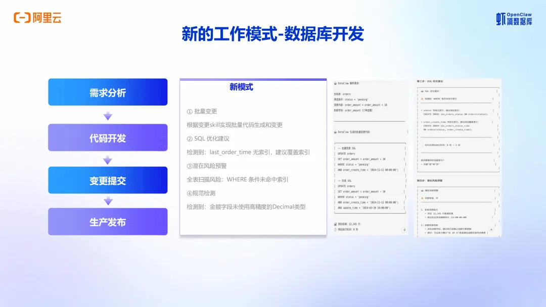 2026年阿里云推出的OpenClaw及系列衍生产品(DataClaw、ADBClaw、PolarClaw、RDSClaw),以AI智能助理为核心,打造了数据库领域的智能化解决方案,实现了从个人工作到团队协作、从开发运维到业务运营的全流程效率革新,推动大模型从生成式向行动式的范式跃迁。
