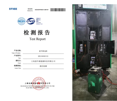 经过权威部门检测并通过的蛮牛换电柜