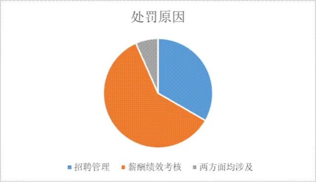 (3)从处罚原因看,仅涉及“招聘管理方面”的5单、“薪酬绩效考核管理”的9单,两方面均涉及的1单。