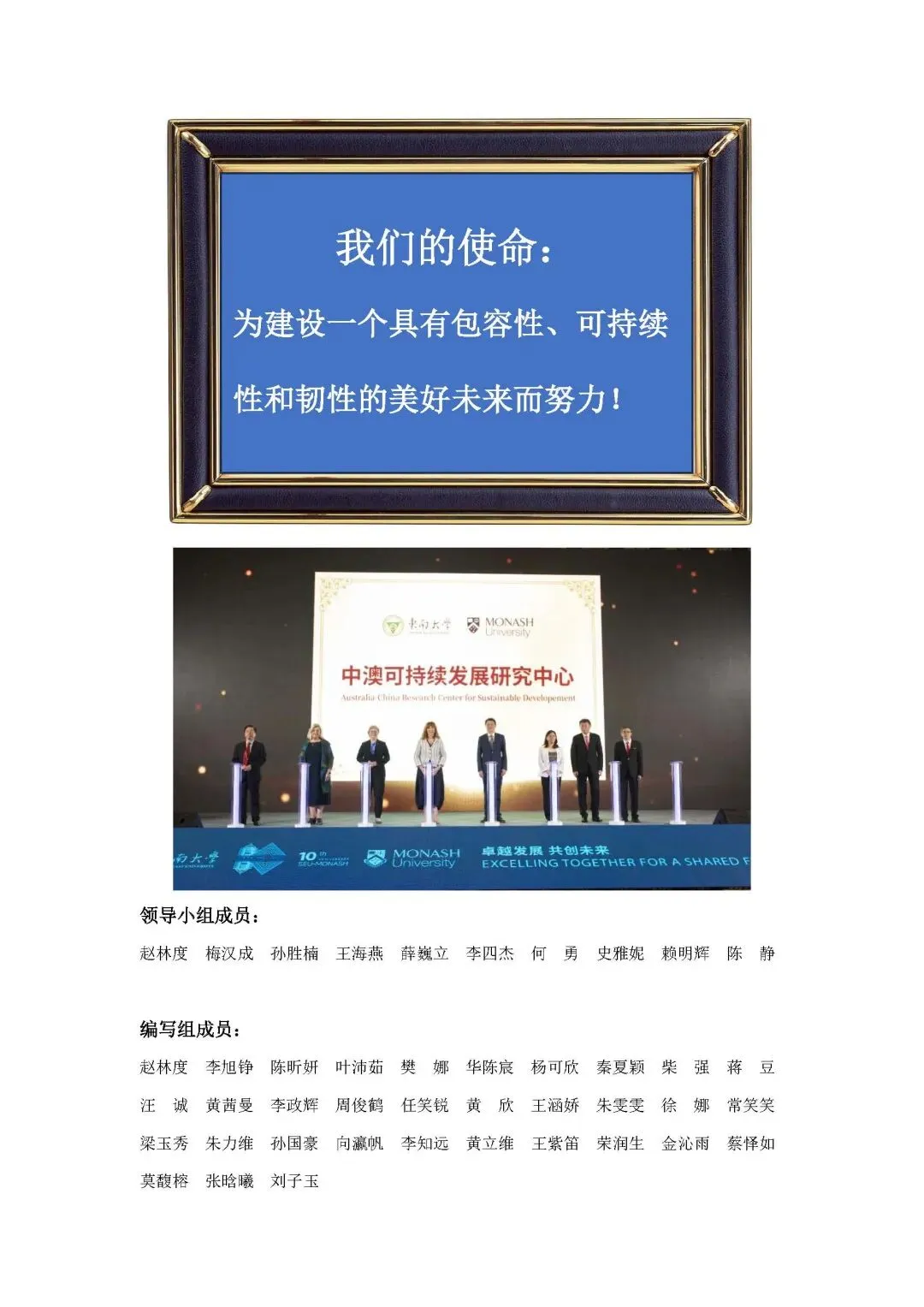东南大学—蒙纳士大学中澳可持续发展研究中心,以共筑中澳可持续发展合作之路为核心使命,秉持“共生・共赢・共享”的发展愿景,深度依托两校顶尖学术积淀和科研优势,全力打造中澳两国实质性、高水平的科研合作与交流平台。