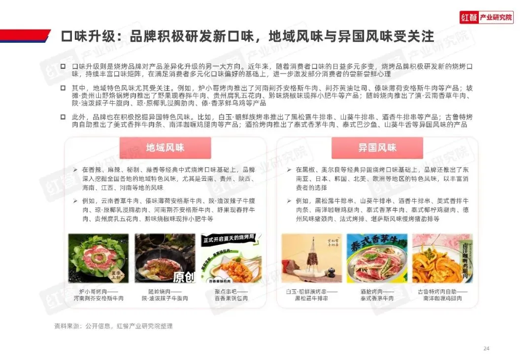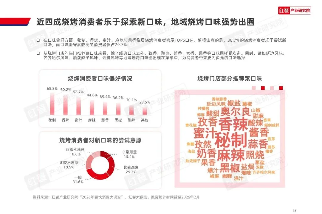 地域特色风味与异国风味成为口味创新的主要方向,全国各地的地域烧烤风味持续出圈,异国特色风味也被不断融入产品体系,为消费者带来更多元的味觉选择。